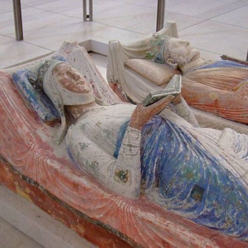 Na haar overlijden is er een praalgraf in de abdijkerk van Fontevraud opgericht van haar samen met Hendrik II, de hertog van Anjou en Normandie. Ze is veelzeggend afgebeeld met een boek.