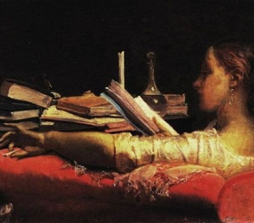 Ik had nog nooit van de kunstenaar Frederico Faruffini (1833-1869) gehoord. Hij verraste me toen ik deze lezende vrouw zag. Hij schilderde haar in een niet nader genoemd jaar. Het schilderij bleef lange tijd, tot na zijn dood, onbenoemd, niet getoond. Pas in 1936 kwam het doek tevoorschijn en kreeg het de titel ‘La lettrice Clara’. Heeft Faruffini het schilderij voor zich zelf willen houden?